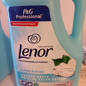 Lenor Professional Sensitive, 5 l, je mehčalec s svežim vonjem in izjemno koncentrirano formulo v ergonomski steklenički z nalivnikom, ki ne kaplja in ga je lahko dozirati. Deluje tudi po sušenju v sušilnem stroju in pomaga zmanjšati statični naboj tkanin. Posebej razvit za profesionalno uporabo.